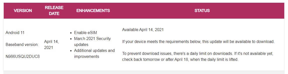 The latest software update for the Galaxy Note 20 on T-Mobile's network has firmware version N981USQU2DUC8, while the Galaxy Note 20 Ultra's update has firmware version N986USQU2DUC8. Apart from the March 2021 security patch, the new updates also bring the eSIM functionality to Galaxy Note 20 series smartphones. Thanks to the combination of eSIM and a physical SIM card slot, these smartphones now have the dual-SIM dual-standby (DSDS) functionality. The new updates also improve the stability of the phones and fix some known bugs.