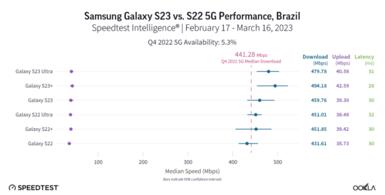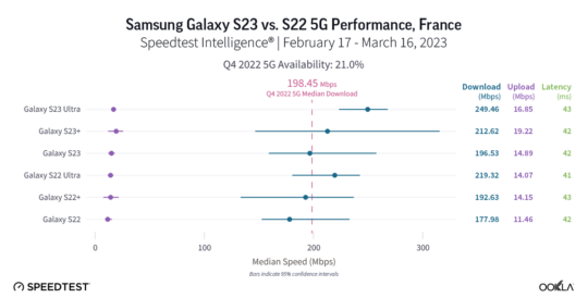 The Galaxy S23 and Galaxy S22 lineups were tested for their 5G prowess in a dozen markets, and looking at the results below, you'll find that 5G speeds differ widely depending on location. In other words, testing 5G speeds in Brazil with 5G speeds in France wouldn't be a very scientific approach to determining the difference in 5G performance between the Galaxy S22 and Galaxy S23.