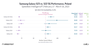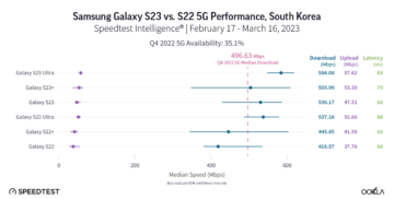 However, testing the S23 and S22 lineups on the same networks in similar conditions does reveal a discrepancy between these models and the X65 versus X70 modems. In most cases, the Galaxy S23, Galaxy S23+, and Galaxy S23 Ultra come out on top of their 2022 counterparts, meaning that the Snapdragon X70 modem is indeed an upgrade over the X65.