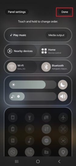 To do that, open the quick panel, tap the pencil icon to go into editing mode, hit the Panel settings button, and select the Together option. Then, go back and tap the Done button next to Panel settings to confirm the change.