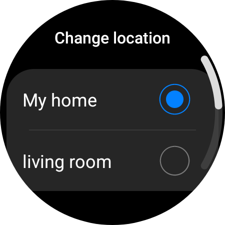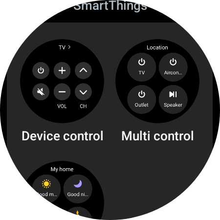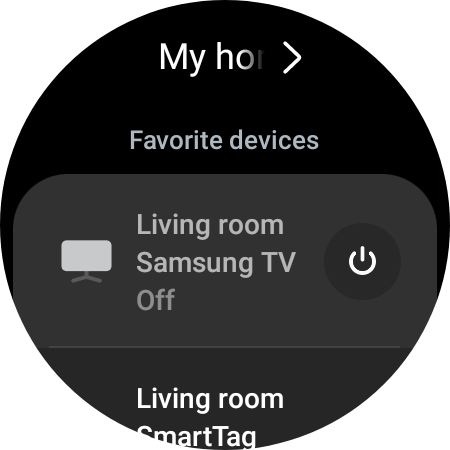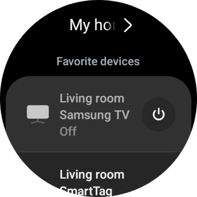 To control your Samsung TV without having to open the SmartThings app, you can add the “Device control” tile to the tile carousel on your watch. When you do, make sure you select your TV's location.