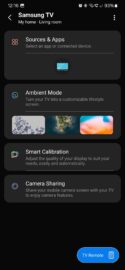 Now, switch to your Samsung smart TV and allow it to make a connection with your Galaxy mobile device. Then, go to “Sources” or “Connected devices” (depending on the TV model and Tizen OS version) and access “Camera Experience.”
