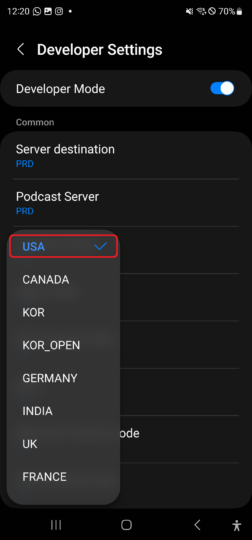 The app will then show a button for Developer Settings. Tap that button, enable Developer Mode using the toggle, and choose USA in the Country Preset option. Once you're done with this process, close the Samsung News app from your device's recent apps menu.