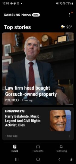 As mentioned earlier, Samsung News is Samsung's news aggregation service. It fetches news, articles, and podcasts from its partner publishes and websites and presents them to you in a neat format with minimal advertisements. Frankly, it looks much better than Google News and Google Discover.