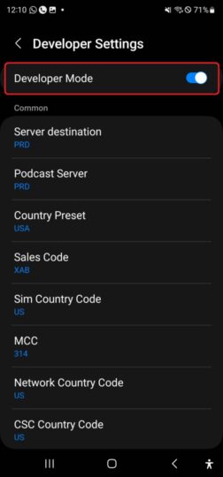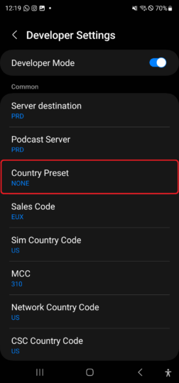 The app will then show a button for Developer Settings. Tap that button, enable Developer Mode using the toggle, and choose USA in the Country Preset option. Once you're done with this process, close the Samsung News app from your device's recent apps menu.