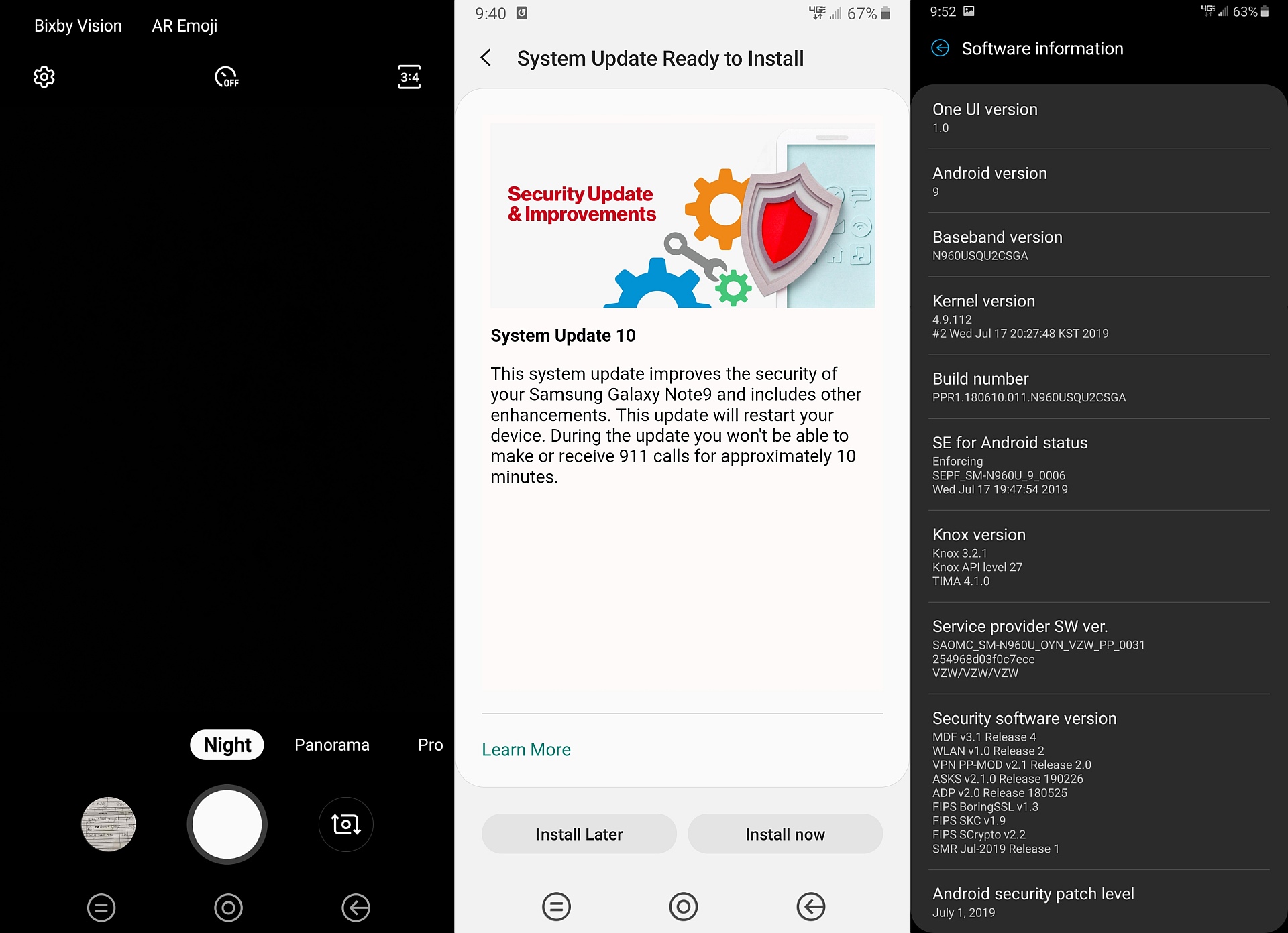 The Galaxy Note 9 and Galaxy S9 manage to offer the same image quality with pictures shot using Night mode as the Galaxy S10 lineup, thanks to the fact that these devices use the same primary camera sensors. The Note 9 and S9 tend to sometimes fail to save Night mode pictures, however, and it's unclear if there's a fix for that issue in the update Verizon is rolling out right now. There probably isn't, considering the problem hasn't yet been solved on the Exynos variants of the device, either.
