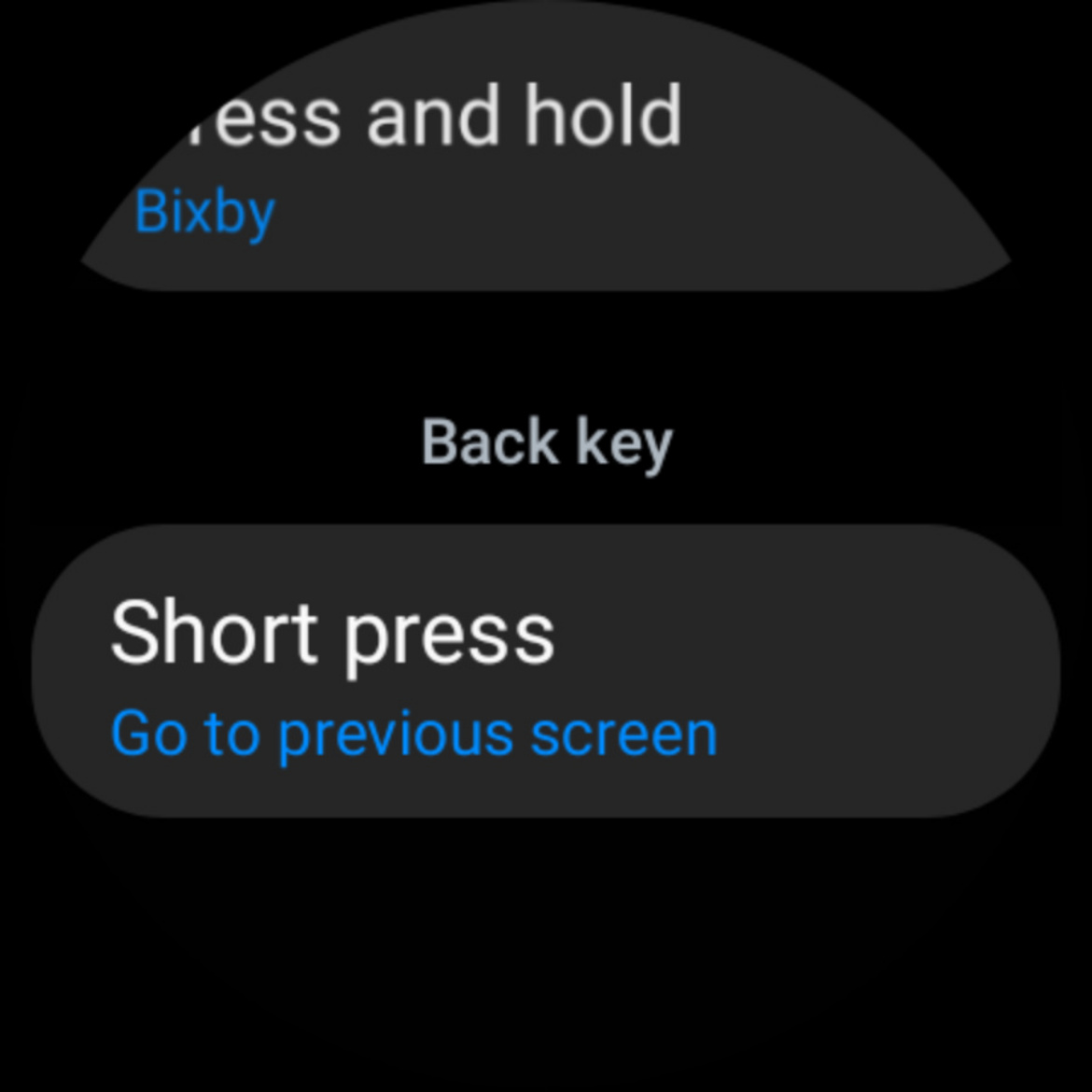 From this menu, Samsung lets you reassign the three available commands: “Double press” and “Press and hold” for the home key, and “Short press” for the back key.