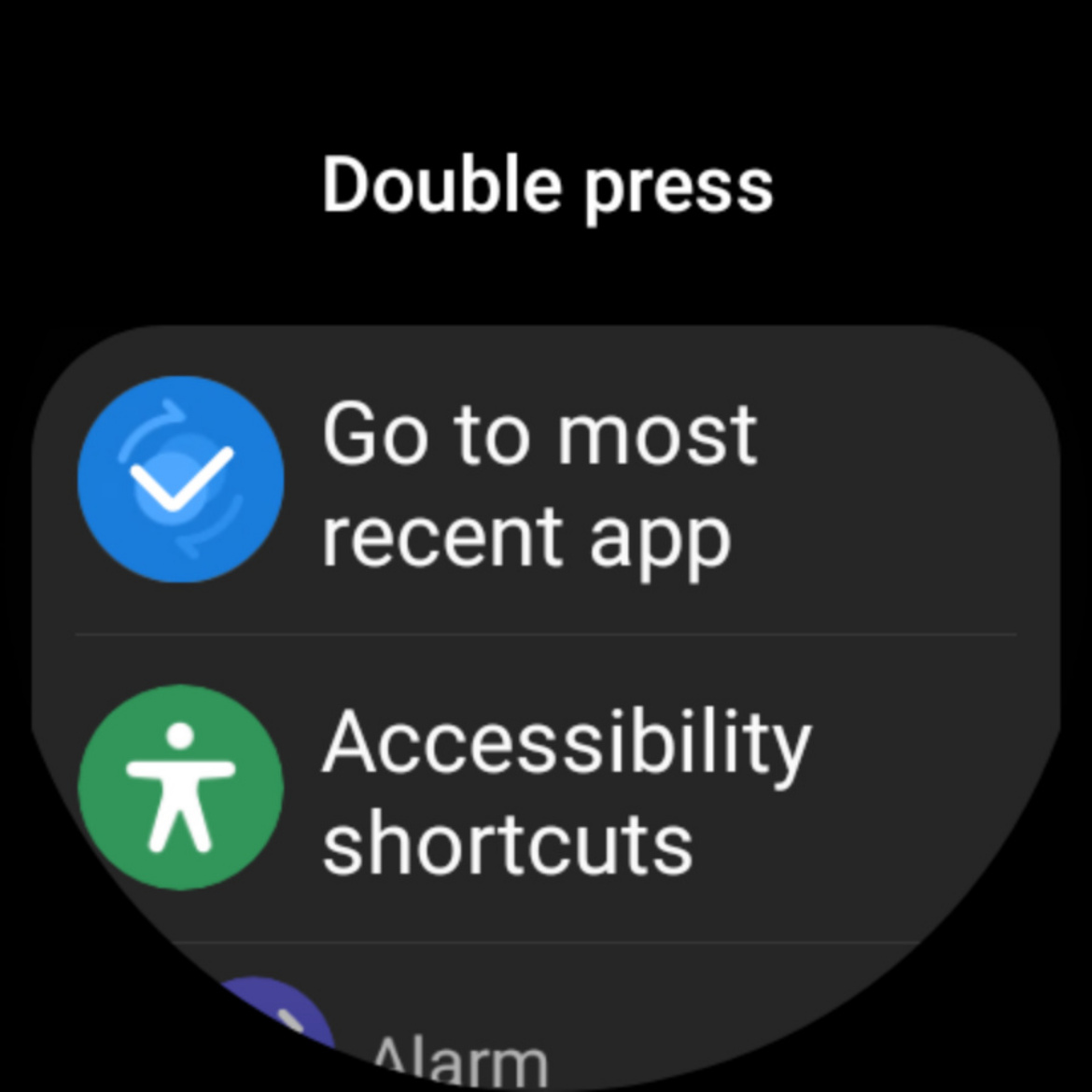 The “Double press home key” command can be assigned to “Go to most recent app,” “Accessibility shortcuts,” or to launch any other app installed on your smartwatch.
