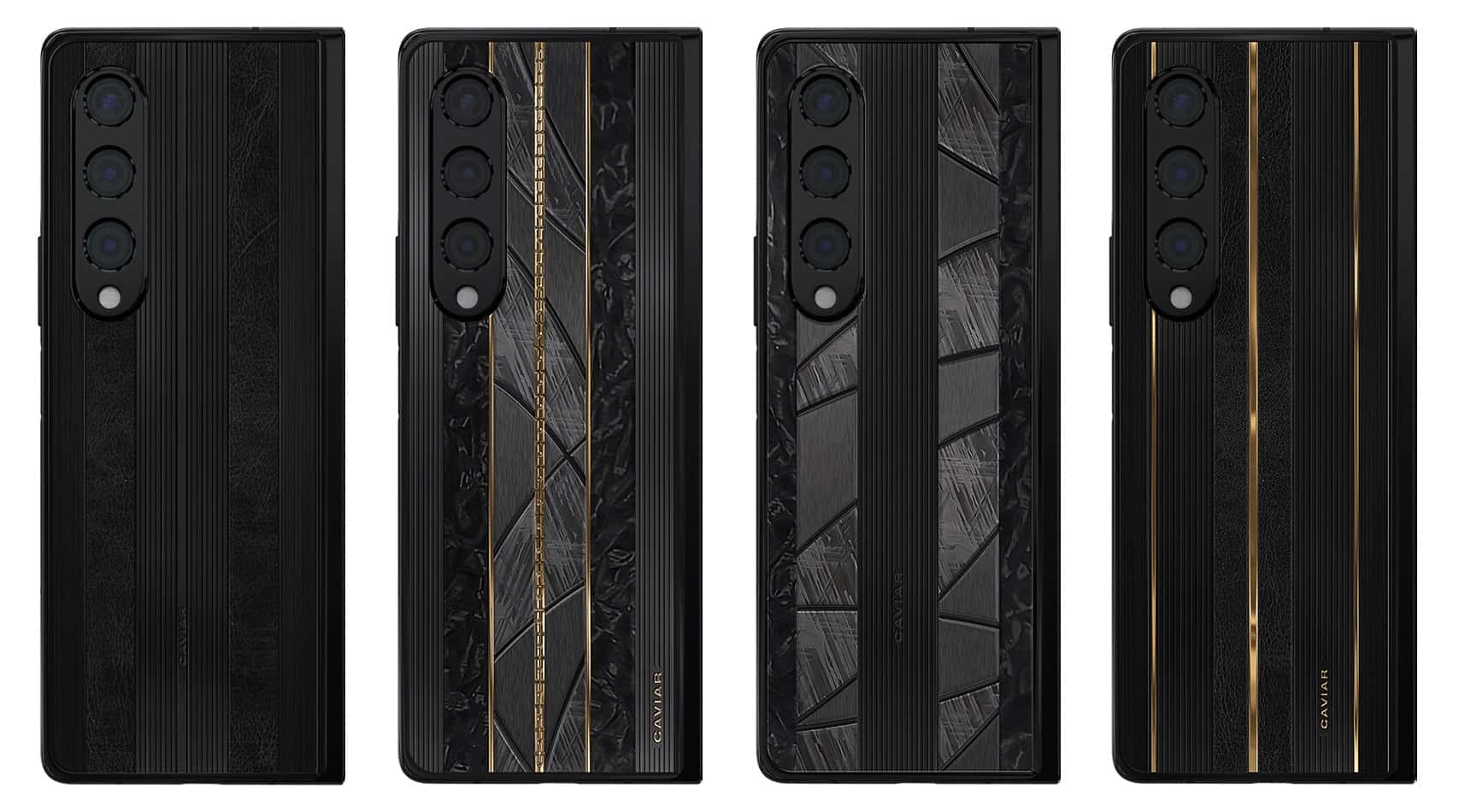 Another limited-edition variant is the Solar Eclipse model, featuring 24K gold inserts and titanium. It costs $9,700. Then there's the Canyon Diablo variant featuring titanium and meteorite inserts and particles. It's available for $10,830. And last but not least, Caviar is selling 29 copies of the so-called Z Fold 4 Golden Meteor model, featuring jewelry alloy, meteorite particles, and 24k gold plated frames.