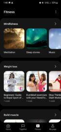Furthermore, Samsung Health has a dedicated “Fitness” section where users can listen to meditation music, sleep stories, watch fitness and sports success stories, and get training tips and guides.