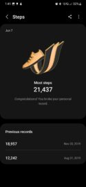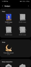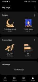 And last but not least, Samsung Health's “My Page” section offers an overview of the platform's achievement system where users can track their records, personal bests, badges, challenges, and more.