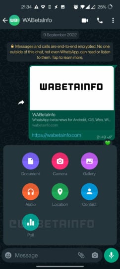 There are chances that the placement of the poll option may change when the feature arrives in the stable version. Also, the number of options for answers may also be decreased from 12. Another interesting finding is that the screenshot shows the feature in a conversation with an individual. This means that the poll creation feature will be available for both one-on-one and group chats.