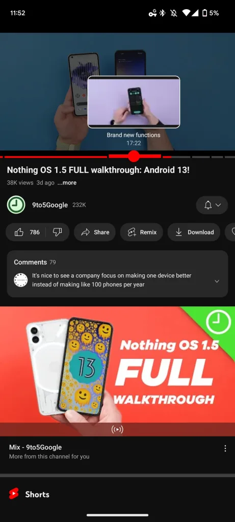The progress bar appears in the new color only when the dark mode is enabled and when the video is playing in portrait mode. The progress bar changes its color to red as soon as you interact with it or when the dark mode is turned off. It suggests that Google is testing this change to reduce distractions when using the app in low-light conditions.