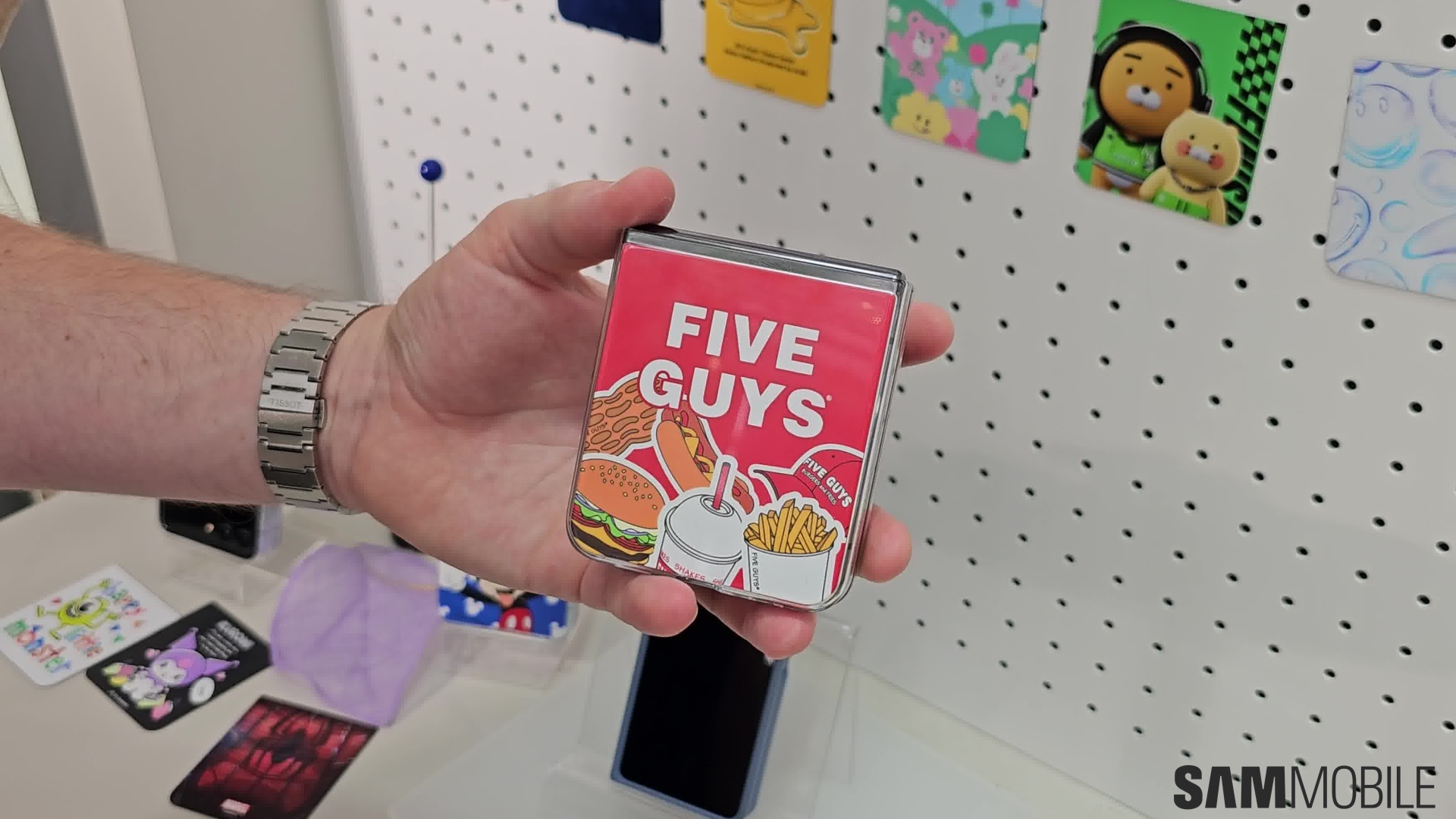 The Flipsuit Case consists of a bumper for the Z Flip 5's upper half, a transparent shell for the lower half, and an NFC card that can come in a variety of designs, from superheroes and company logos to cartoon characters, fast food chain brands, and more. The best part is that the NFC card modifies not only the Galaxy Z Flip 5's exterior look but also enables new cover screen themes and animations. Here's how it works.