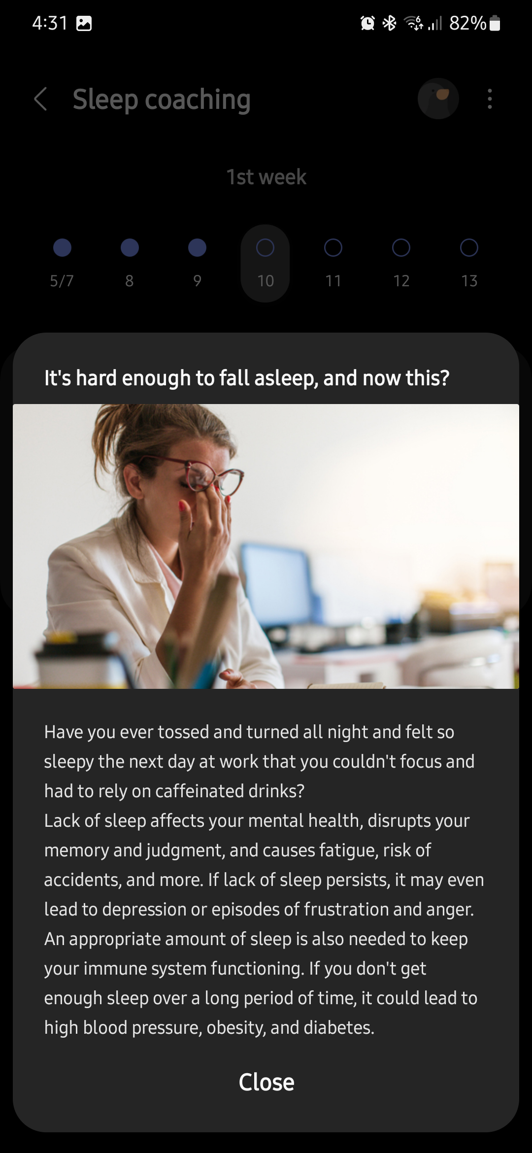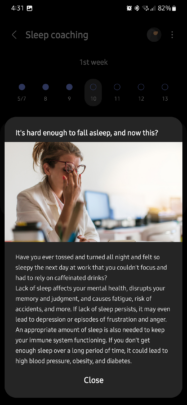 I can't keep up with the coaching because, paradoxically, I sometimes have trouble sleeping. And going out on a limb here, I'm going to say people who don't get enough rest tend to forget about minor tasks such as checking the Sleep Coaching screen in Samsung Health every day.