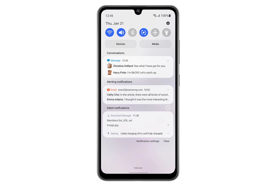 In part, One UI 3 was redesigned with the purpose of making UI elements easier to read / reach, and it boasts new animations to highlight the display's 90Hz refresh rate. And despite the fact that the Galaxy A32 is a budget phone, it ships with the full-fledged version of One UI as opposed to One UI Core.