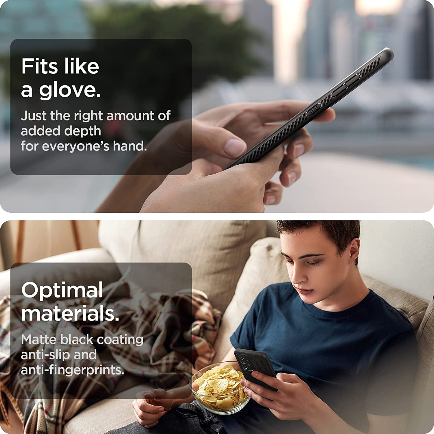 The Spigen Liquid Air Armor for the Galaxy A33 offers great protection in a sleek and modern design. It has an anti-slip, anti-fingerprint matte black coating and tactile side buttons.