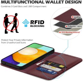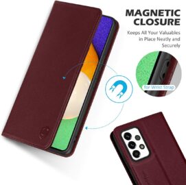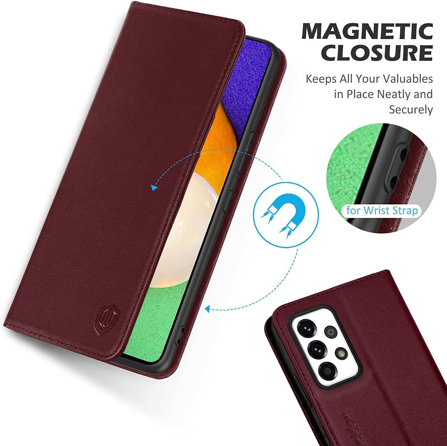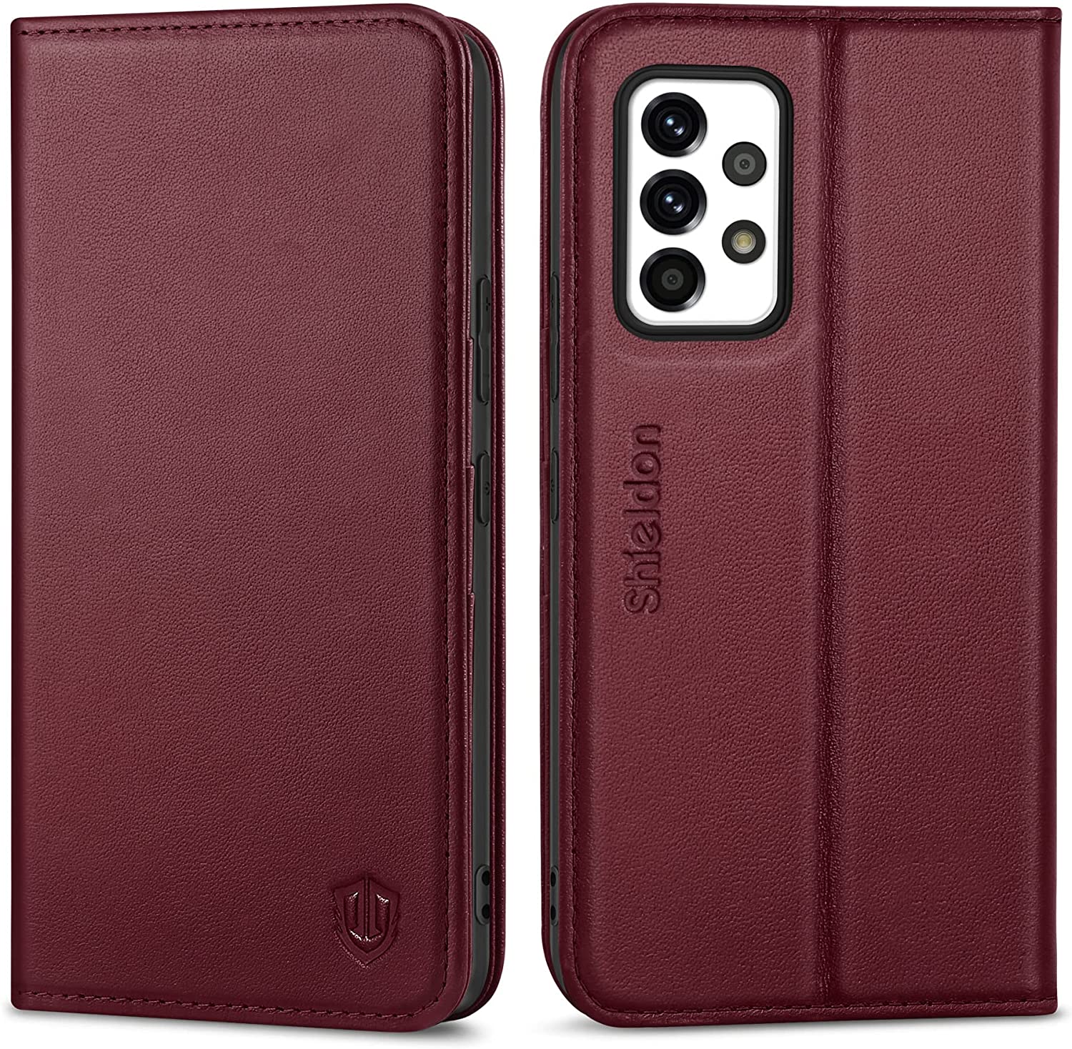 Another wallet-style case for the Galaxy A53 that you may want to look at is the SHIELDON Genuine Leather case. It features 3 card slots with RFID shielding technology, a side pocket for ID cards, and a kickstand that blends in with the rest of the design. It's available in a variety of colors, including black, midnight green, brown, navy blue, royal blue, and wine red.