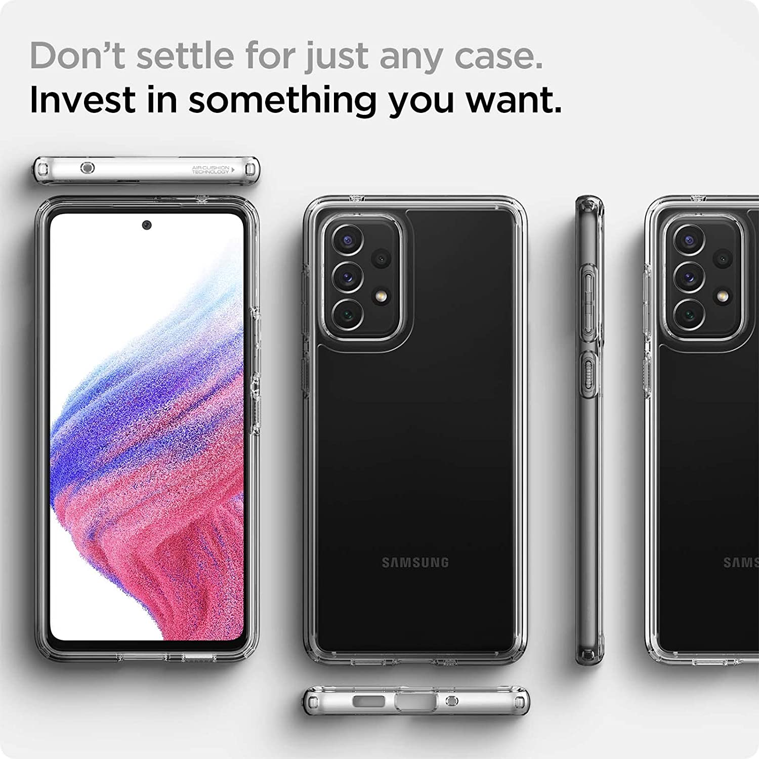 Opposite to the clear case, Spigen offers a matte black shock-absorbent, lightweight case for the Galaxy A53. The Liquid Air case boasts Mil-Grade protection, and Air Cushion Technology makes it shock-absorbent. It features an anti-slip matte surface that's resistant to fingerprints.