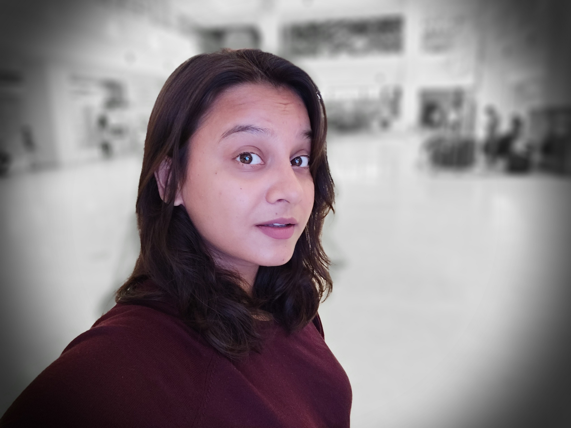 The 32MP selfie camera shoots 8MP pictures by default, and there's no reason to switch to 32MP as it doesn't offer any improvement in sharpness. Selfies have a good amount of detail in bright outdoor conditions but turn soft as you move indoors to artificial lighting. You can also switch between the full field of view and a narrower view. There's the Selfie focus mode for taking bokeh selfies, with new effects such as Color Point, which turns the background to grayscale. Selfie focus worked well but sometimes had issues detecting my wife's face when she was wearing glasses. And you have the usual artefacts around loose hair, although they won't stand out if you're looking at the photos on the phone.