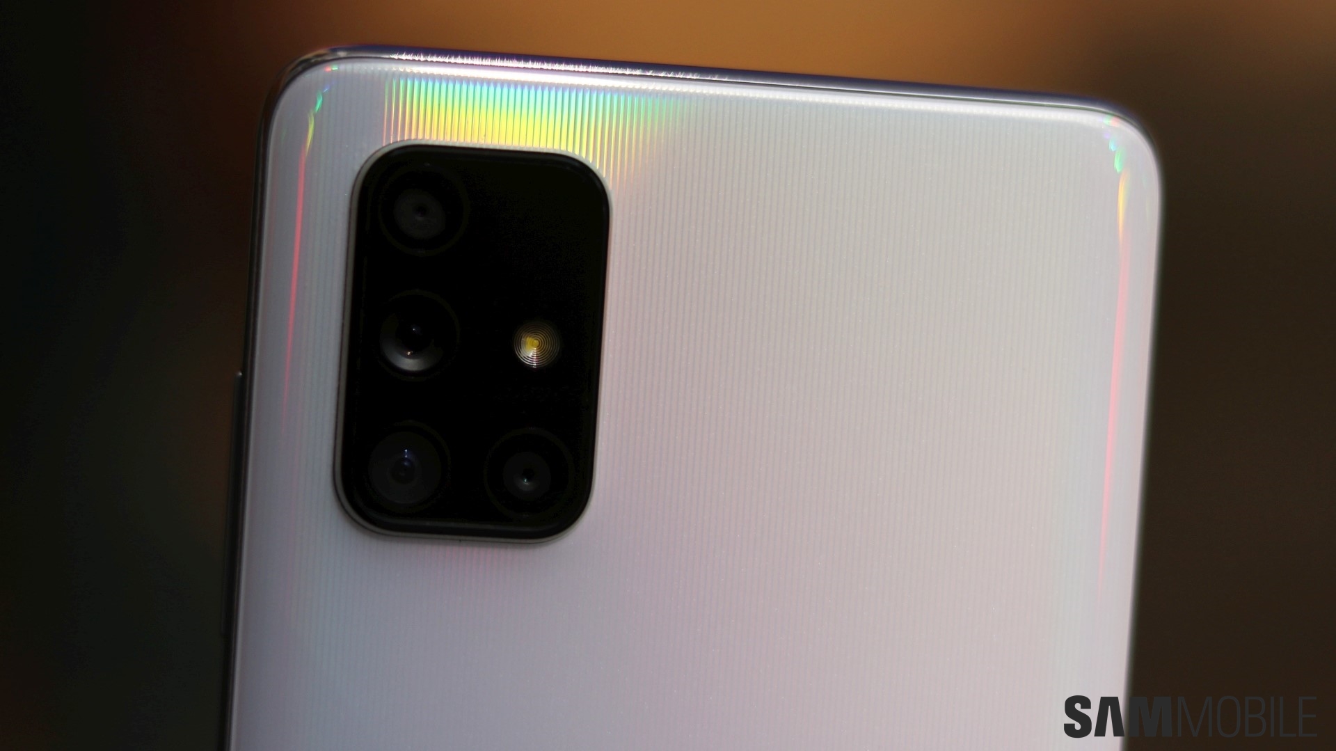The Galaxy A71 is a pleasure to hold and use. Despite the 6.7-inch display and 4,500 mAh battery, the A71 is sleek and light. There's plastic on the back, but the phone feels premium while not being slippery as a phone with a glass back. It also looks striking – the rear panel has thin stripes running from the top to bottom and a couple of lines running across diagonally. When the light hits the back panel, it creates a beautiful rainbowish pattern across those stripes.