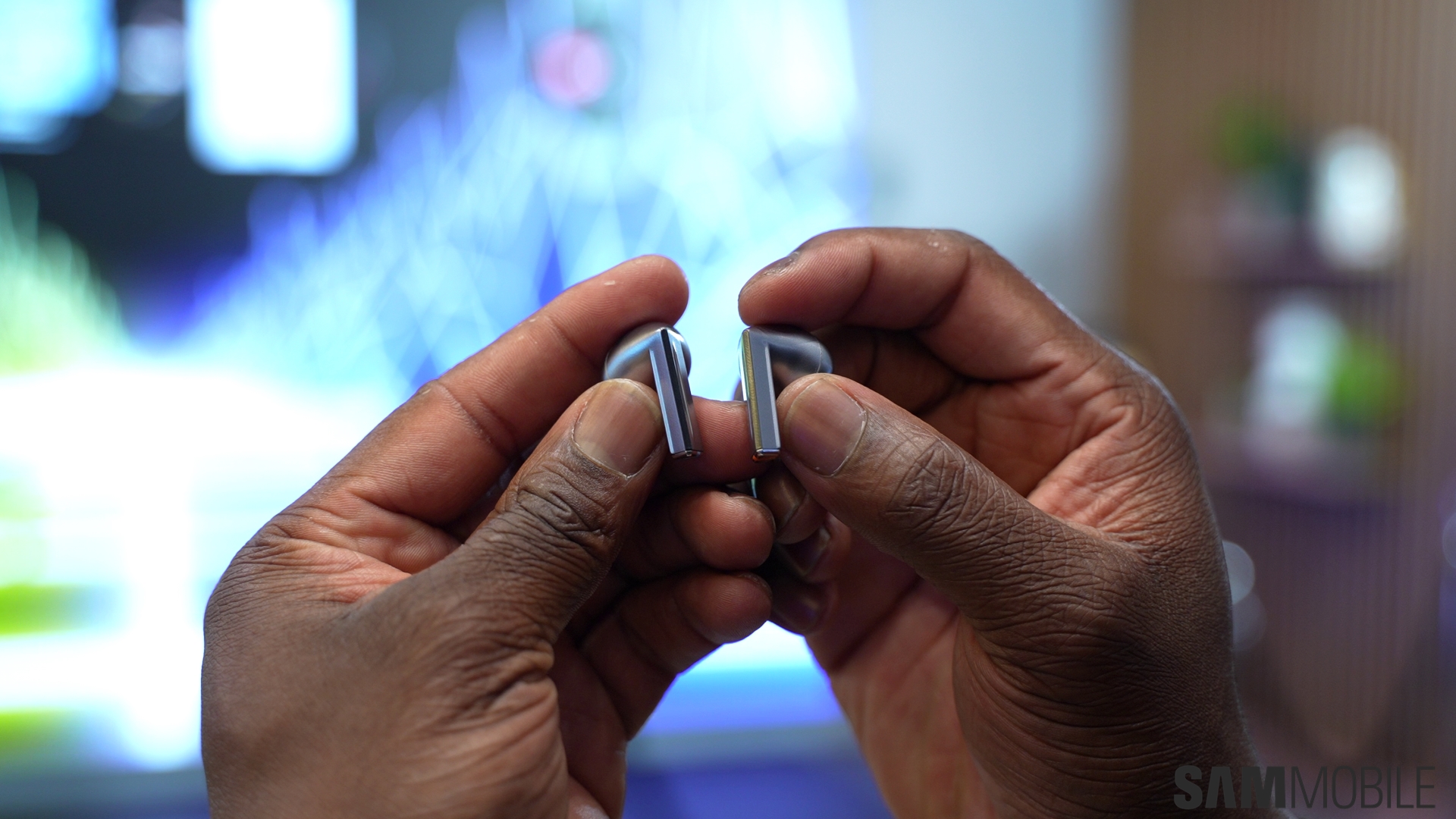 These stems bring several advantages, including room for a bigger battery, improved call quality, more reliable controls, and some bling. They also have what Samsung calls Blade Lights, which light up for notifications and more and also allow you to control the earbuds when you pinch or swipe on the lights.