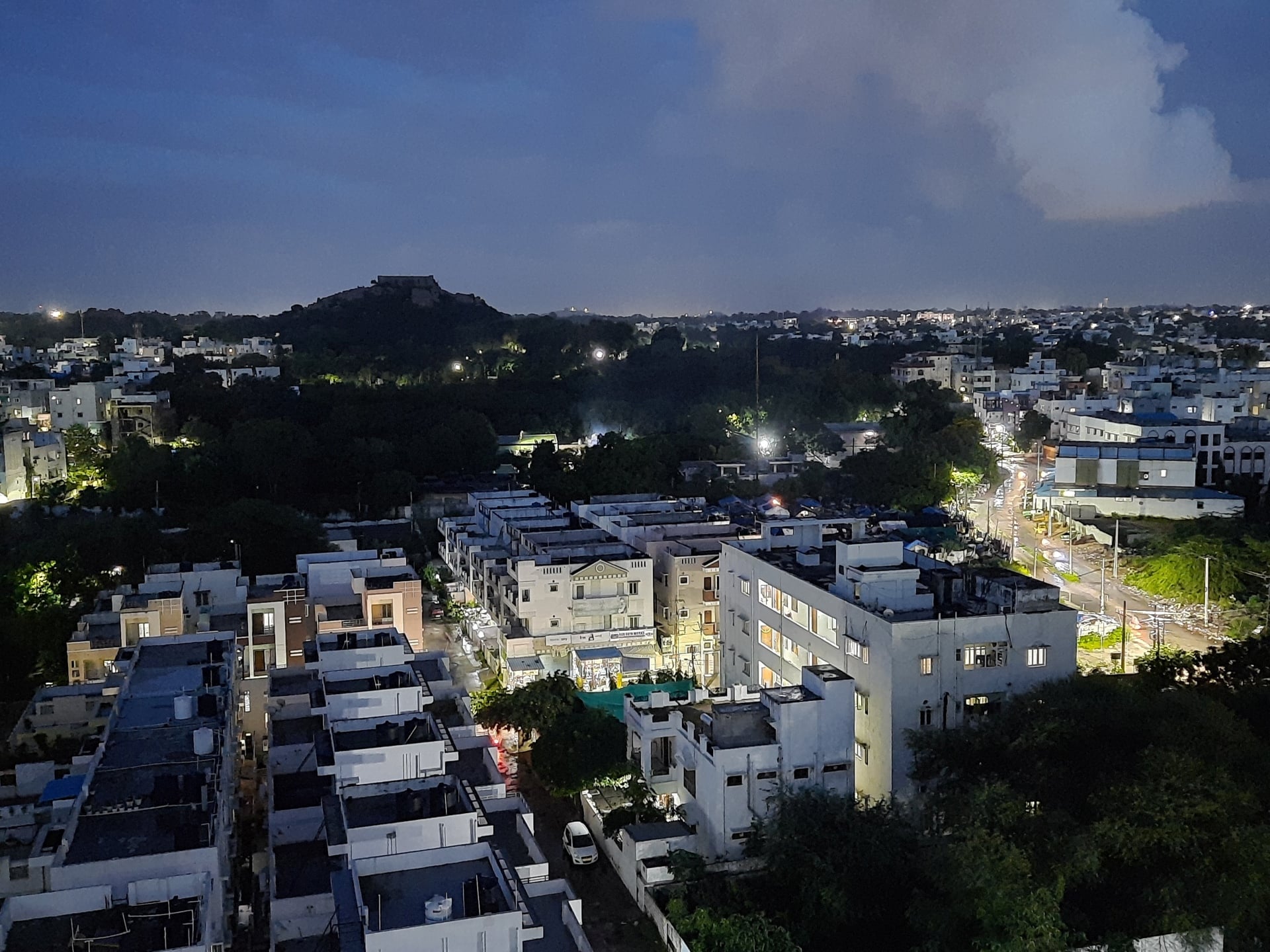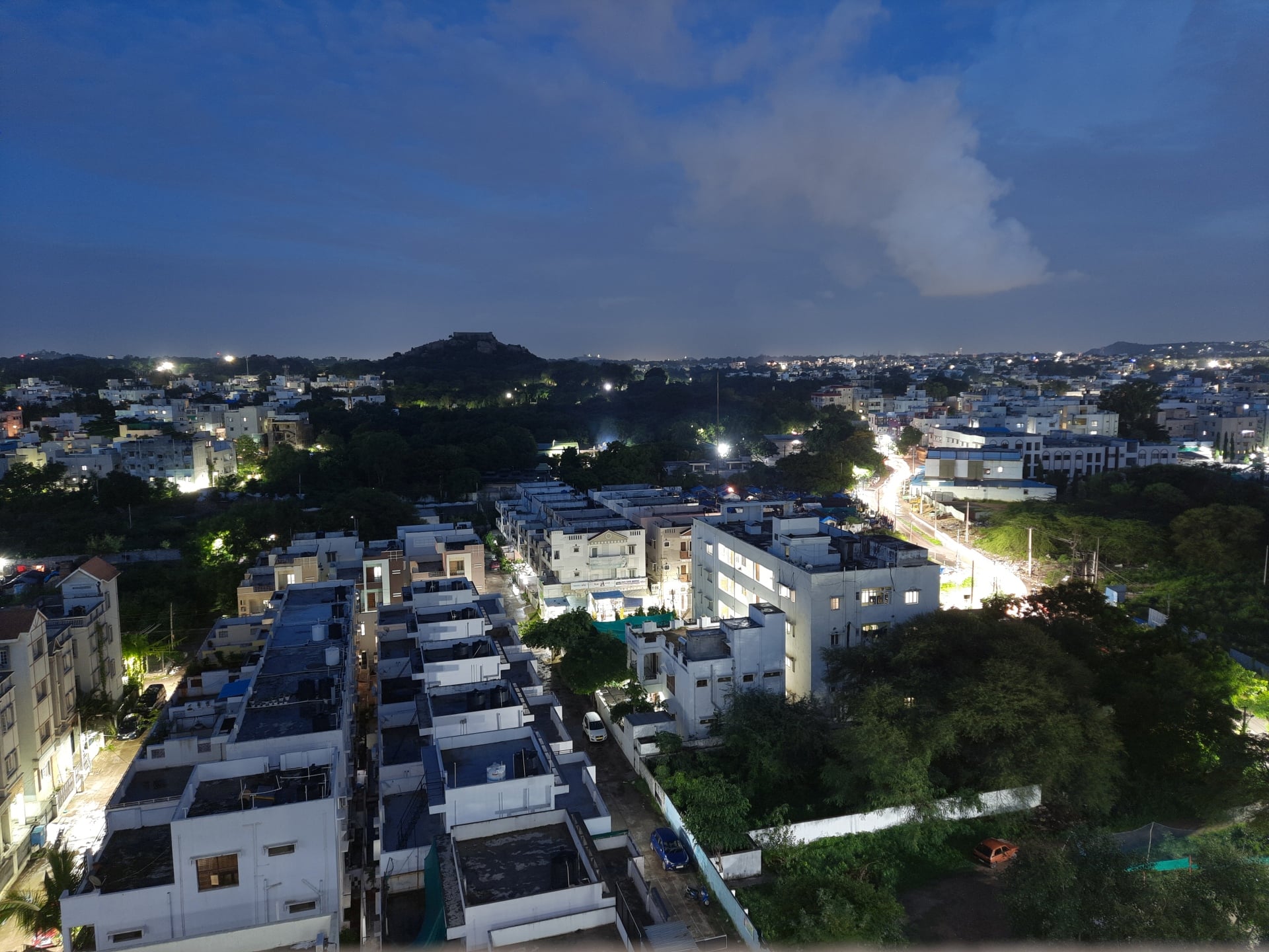 Below is a side-by-side comparison of a scene I captured in Night mode (slide right) and by using Pro mode (slide left). I had to keep the phone down on a surface to make sure there's no blur in the Pro mode photo, but I managed to get a picture with a little more light and a little less noise by using custom shutter speed and ISO values. It's also worth noting that Night mode cuts off part of the frame, so that's another reason to try Pro mode at nighttime so you can capture the full scene.