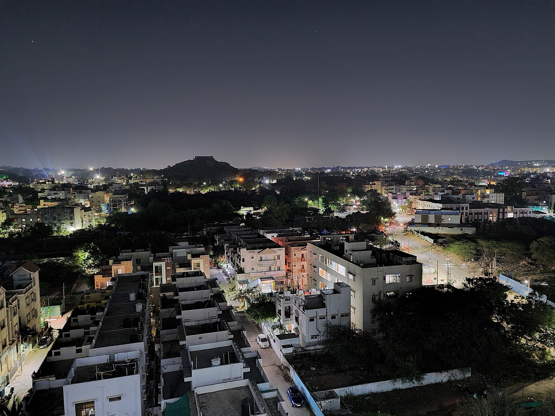 Here's a nighttime scene captured at 1x, 3x, 10x, and 30x zoom: