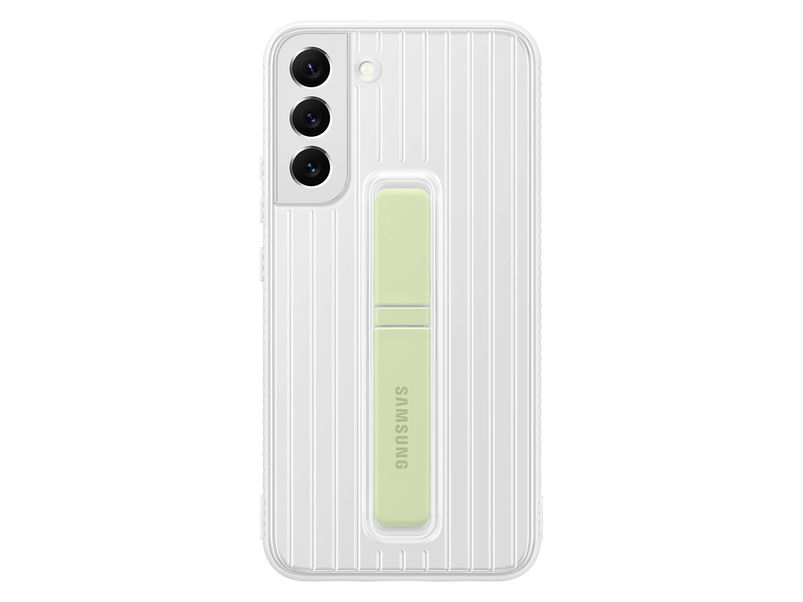 The Galaxy S22+ Clear Standing Cover features a built-in kickstand and has a clear finish that allows your phone's matte color to pass through.