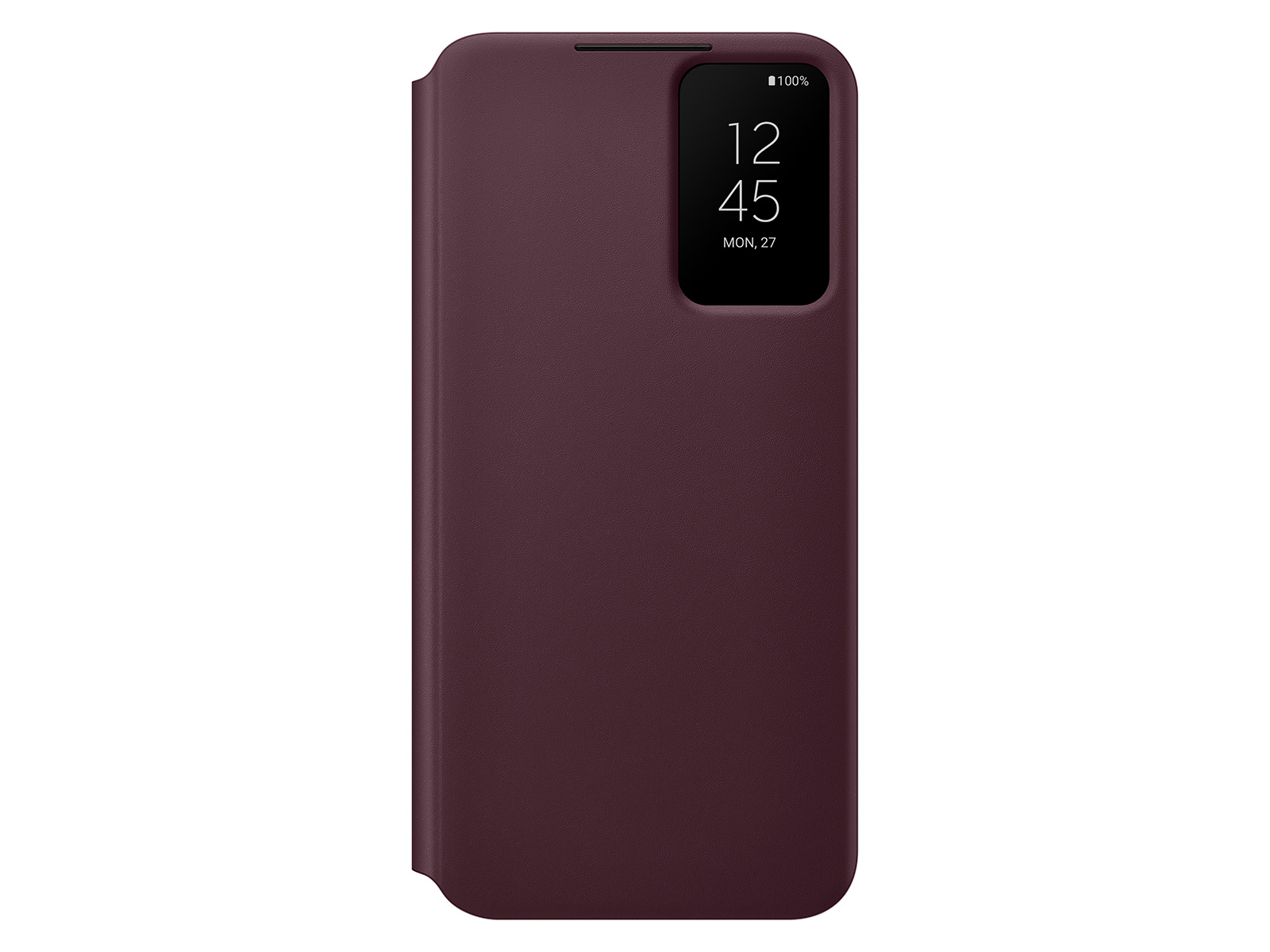 Moving on to something more stylish, the Galaxy S22+ S-View Flip Cover is available in three colors: black, white, and burgundy. The flip cover has a rectangular window for AoD notifications. It's touch-interactive.