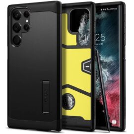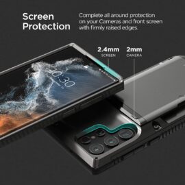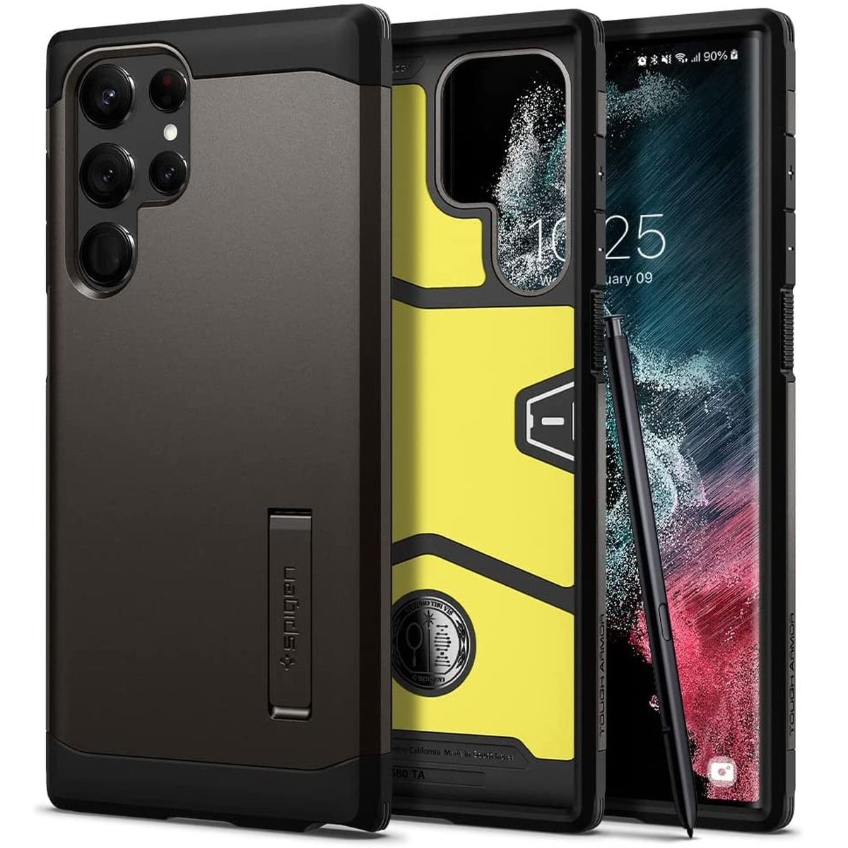 An even more resilient Spigen case for the Galaxy S22 Ultra is the Tough Armor. It's made of TPU and PC, and it uses special foam to add an extra layer of shock resistance. It's MIL-STD-810G-certified and has a kickstand. Spigen is offering it in two color options: black and gunmetal.