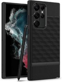 Stepping it up a notch, the Spigen Rugged Armor for the Galaxy S22 Ultra is a flexible TPU case with carbon fiber elements and a spider-web pattern on the interior. It, too, uses Air Cushion Technology and tactile side buttons.