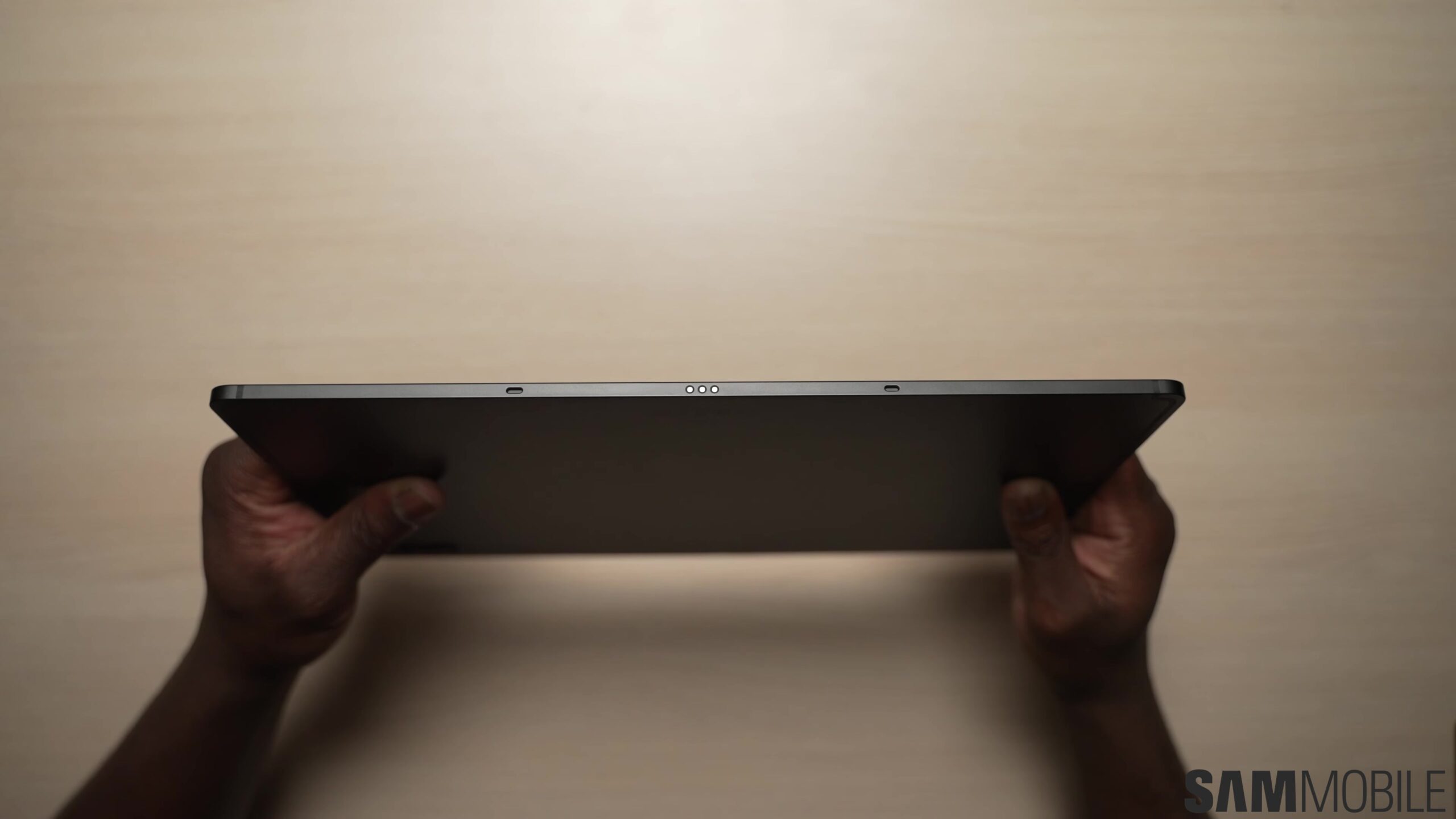 The unibody all-metal construction and slim profile help strike that balance. The fit and finish are exceptional. It feels every bit the premium tablet that you'd expect it to be. Using it one-handed, particularly with the S Pen, can feel a bit intimidating just because of its massive footprint and 726g weight.