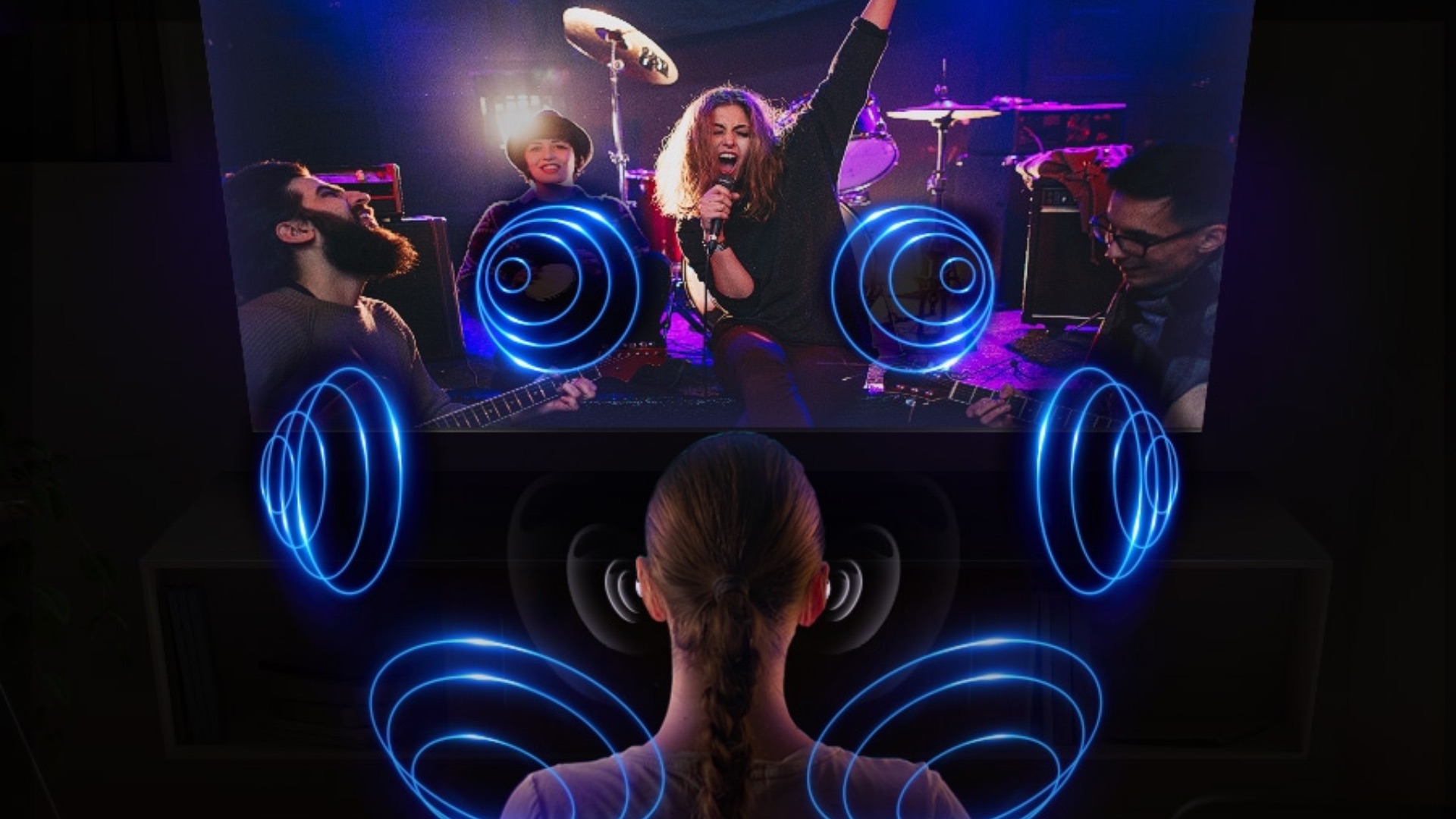 The QN800D has a 4.2.2-channel 70W speaker system with Dolby Atmos audio. Even if you don't use a multi-channel speaker setup or soundbar, you can still enjoy Dolby Atmos audio, as the TV's built-in speakers have two up-firing speakers for recreating spatial audio. The audio gets even louder and more impactful when the TV is paired with a Samsung soundbar or two Music Frame speakers.