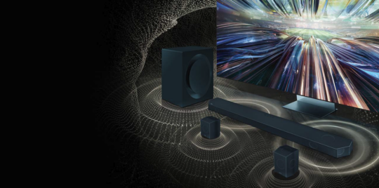 Two people can listen to the TV's audio simultaneously using Bluetooth earphones. When connected to compatible Galaxy Buds, the TV offers 360 Audio.