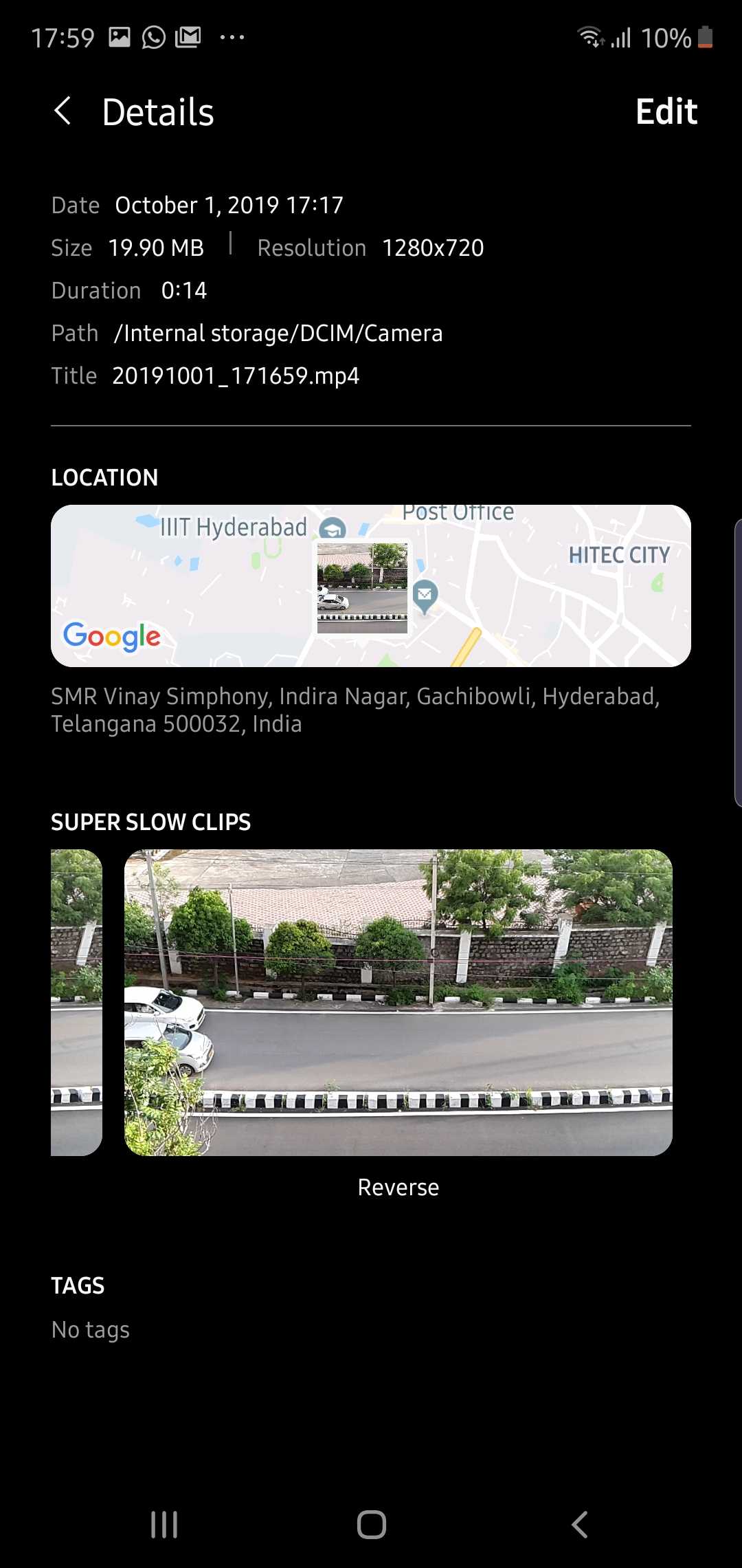 You can access the feature by opening the Gallery app, selecting the desired Super Slow-mo video, and swiping up (or tapping the three-dot context menu and selecting Details). Here you will see details on when and where the video was captured, its duration, size, location on the phone storage, etc. More to the point at hand, you will also notice three Super Slow-mo clips listed below, including the original version along with the versions played back in Reverse and Forward & Reverse.