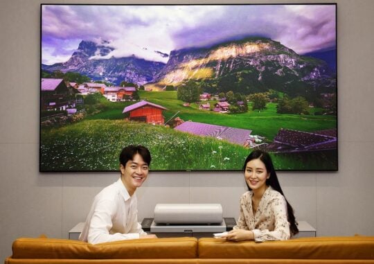 The Premiere: It is Samsung's highest-end projector. It has a triple-laser ultra-short-throw projection system with 4K resolution, 2,200 ANSI lumens brightness, and HDR10+. It can display up to 120-inch images on a wall or a projector screen. It has a 2.2-channel speaker system with Adaptive Sound and Multiroom Link. It runs Tizen OS and has all the audio and video streaming options, including installable apps, AirPlay 2, SmartView, Tap View, DLNA, sound mirroring, Bluetooth audio, and more.
